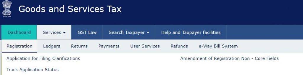 Step 5: Wait for 15 minutes, and then log in to the GST portal. Go to Services > Registration > Amendment of Registration Non-core Fields.