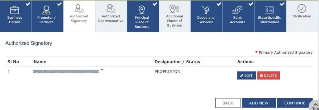 Step 2: Go to the authorised signatory tab. Click on the ‘Add new’ button.